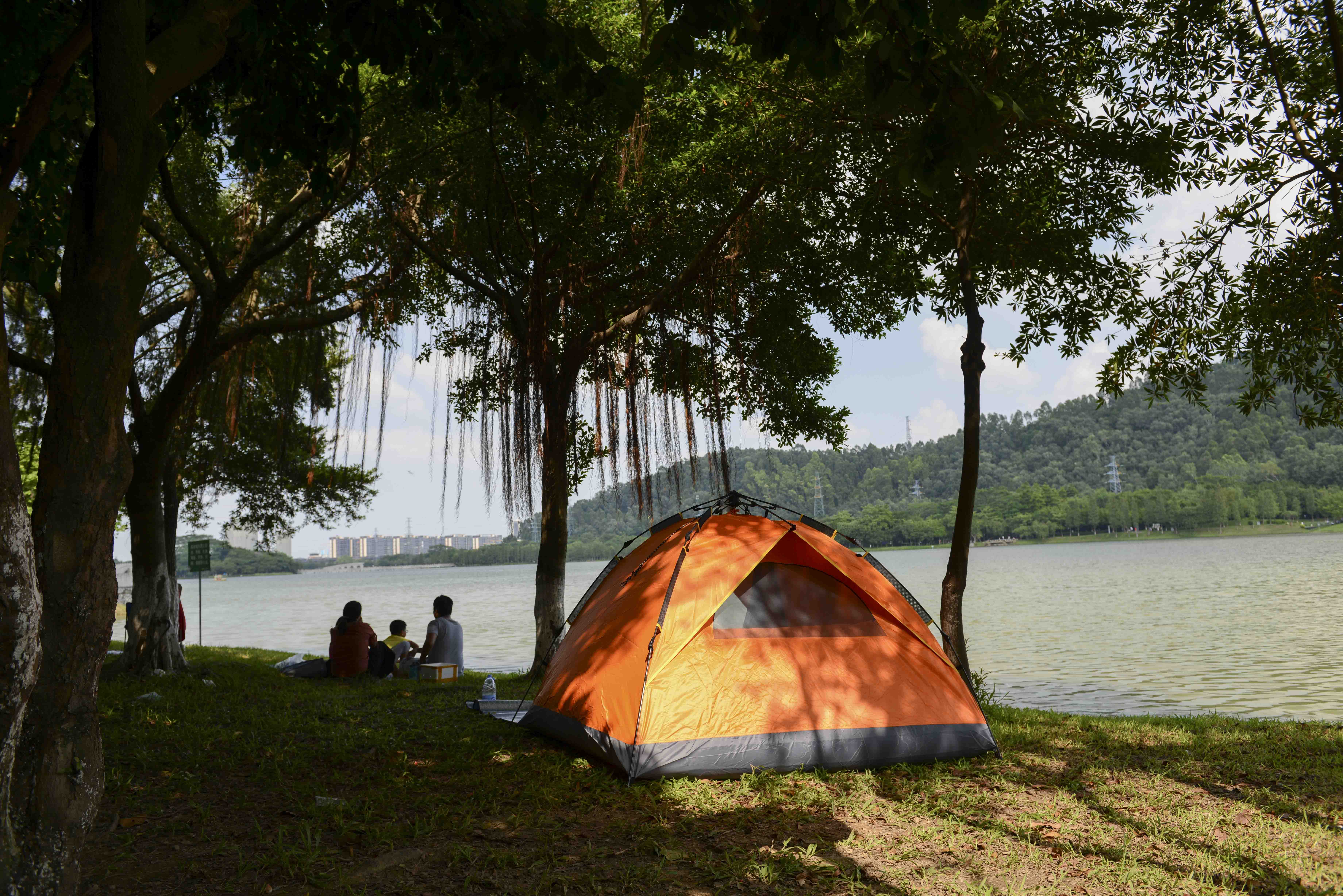 Diverse Familien hatten sich ein Zelt aufgestellt und den ganzen Tag im Park verbracht